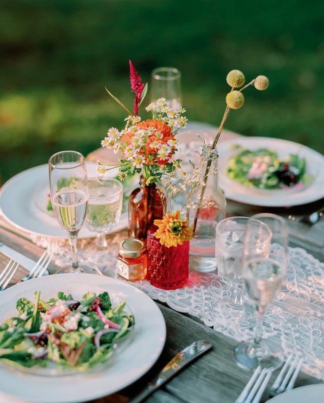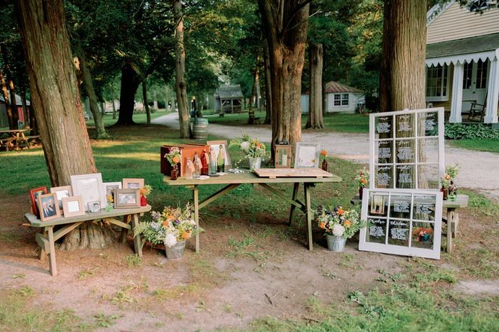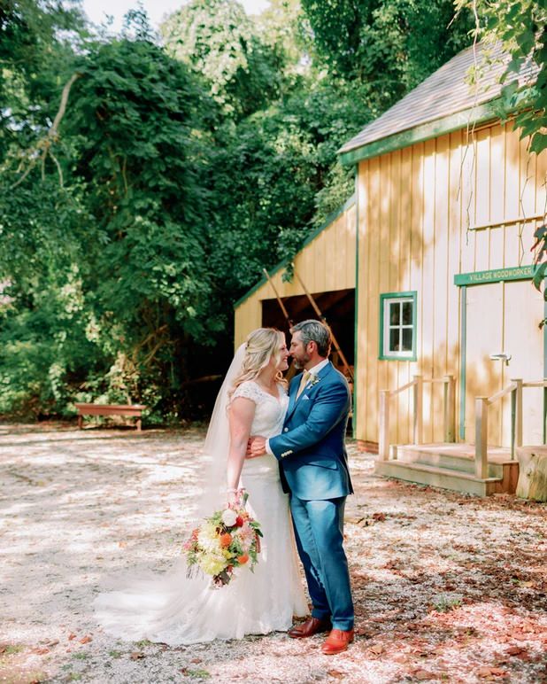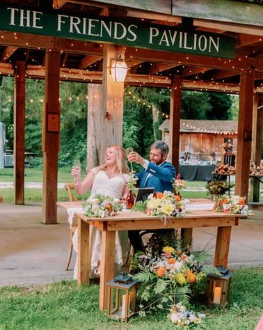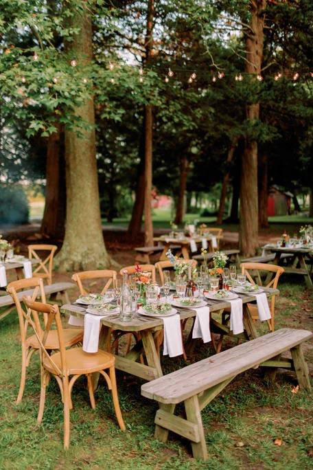 The reception is held outside under beautiful towering trees, next to the pavilion where you and your guests will dance all night long. The venue provides the cutest picnic tables! There is also plenty of space for decor and lawn games alike. It’s truly one of the most unique venues there is! From what my couples have told me, the Historic Cold Spring Village wedding cost is affordable too.