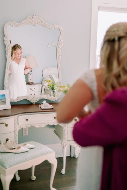 When you’re planning your Historic Cold Spring Village wedding, you’ll need to plan for lodging and locations to get ready on the big day. Luckily, Cape May has a plethora of gorgeous hotels, from boutique to large and everything in between. There are also lots of rental homes and Airbnbs available with that distinct Cape May seashore charm! For this wedding, Kristen chose to get ready with her sisters in a nearby house with beautiful natural light. A bright getting ready space is always high on my recommendation list!