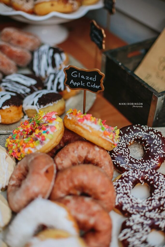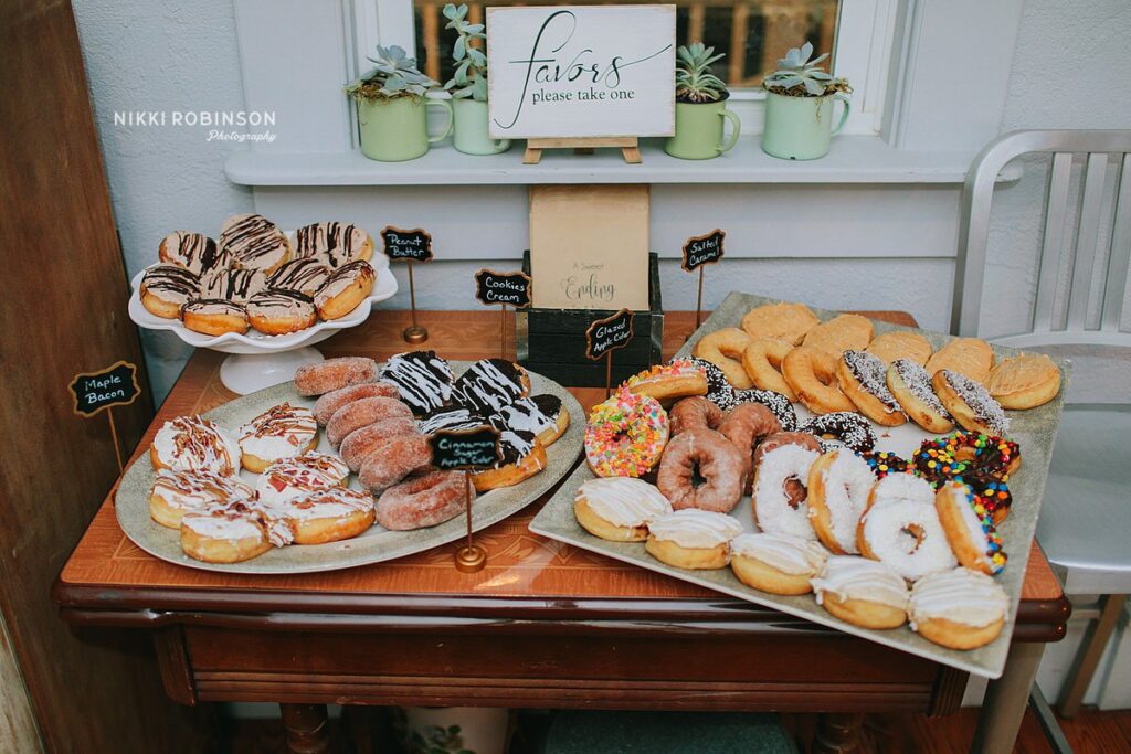 Lucky for me, Megan & Mike had one of the easiest and most wonderful weddings I’ve ever photographed! Their wedding was so great, it actually put me at ease thinking about my wedding. Everything just went so well! Their friends and family were warm and helpful, the flowers and the venue were stunning, and we had time to take all of the photos we had planned to take. Some of my favorite highlights include: Megan pulling up to Everly in Mike’s dad’s vintage Mustang and having a dress reveal with her bridesmaids, Mike’s super sweet emotional reaction to seeing Megan walk down the aisle, and of course – the scrumptious donut favors at the end of the night!