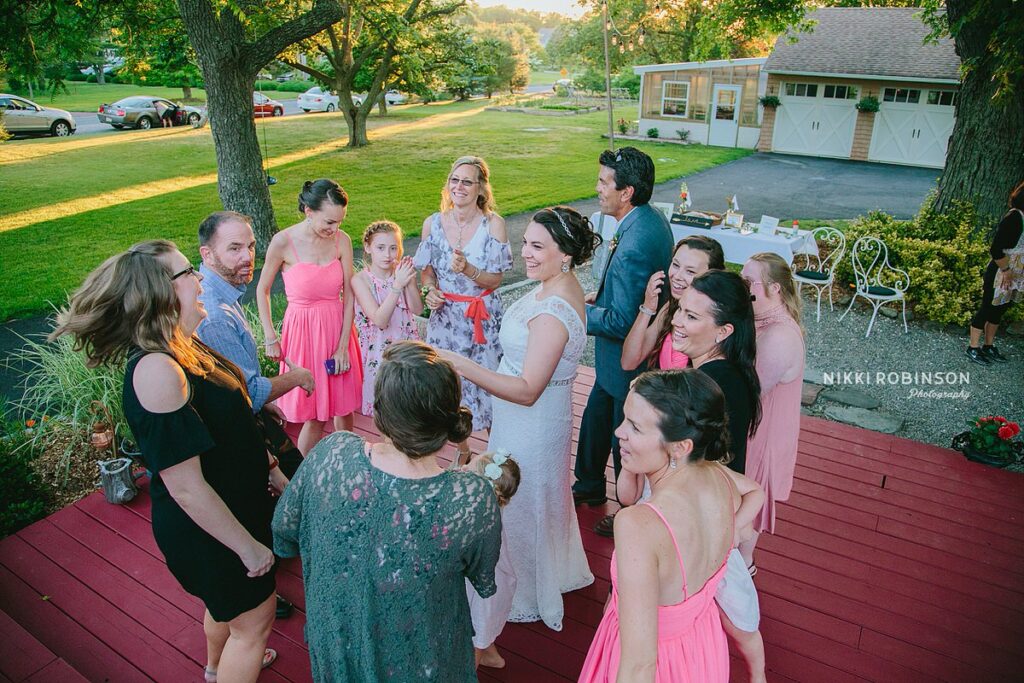 Tiffany & Nathan got married on a beautiful day in June in the back yard of Tiffany’s parents’ home where she grew up. The home is an old farm house in Beesley’s Point, NJ, right outside of Ocean City, where Tiffany’s parents do some farming and raise chickens. They turned one of their barns and the area surrounding into Tiffany & Nathan’s own personal outdoor church, and transformed the rest of the yard into a colorful reception space with all personal touches! When you meet Tiffany & Nathan, you can see right away that they’re a perfect match, both with warm, loving families and friends – Nathan’s family came all the way from Michigan, and they had friends from all over the country. Tiffany has a younger brother with down syndrome, and they have a very close bond, so it was so great for her to find someone like Nathan, who loves and accepts him just as much!